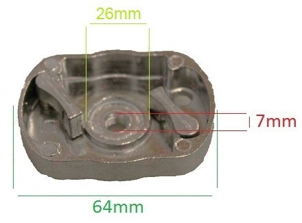 Oala cu clicheti pentru motocoase chinezesti. Dimensiuni: Lungime: exterior 64mm; interior 60mm; Latime: exterior 48mm; interior 44mm; Distanta intre prinderi(mijloc-mijloc): 51mm;