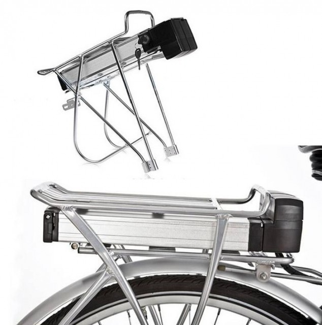 Baterie bicicleta electrica 36V Bateria se livreaza cu suport (portbagaj) si cheie (de exemplu suportul poate ramane pe cadrul bicicletei pentru a lua bateria ca sa o incarcati in casa) Caracteristici tehnice: Material portbagaj: aluminiu Capacitate: 16 A Intensitate curent pentru incarcare: 2 A Autonomie pe un kit de 36v 500w cu asistenta la pedalat 40-50 Km Tipul bateriei: LI-ION Rezistenta celulelor (mΩ ): 40 mΩ Specificatiile celulelor :3.7V 2.6AH 18650 celule Voltajul de incarcare (V):42V Timp de incarcare :5h Temperatura optima de incarcare :0 - 45°C Temperatura optima de descarcare:-10 - 60°C Greutate: 7.8kgs Speranta de viata : 700 de cicluri de incarcare complete Aceasta baterie se poate folosi la biciclete electrice cu motoare de maxim 500w sau 1000w putere. Aceasta baterie se poate folosi pentru urmatoarele kituri de conversie bicicleta electrica: https://www.generalmotor.ro/cumpara/kit-conversie-bicicleta-electrica-36v1000w-roata-fata-26-inch-fara-7758368 https://www.generalmotor.ro/cumpara/kit-conversie-bicicleta-electrica-36v-350w-roata-fata-26-inch-fara-7758367 https://www.generalmotor.ro/cumpara/kit-conversie-bicicleta-electrica-36v-500w-roata-fata-26-inch-fara-7758366 Incarcatorul pentru aceasta baterie in gasiti in link-ul urmator: https://www.generalmotor.ro/cumpara/incarcator-baterie-bicicleta-electrica-36-v-7757839 Pentru dimensiuni va rugam sa consultati imaginea de mai jos: Incarcatorul pentru aceasta baterie de bicicleta electrica il puteti gasi mai jos: https://www.generalmotor.ro/cumpara/incarcator-baterie-bicicleta-electrica-36v-model-2-7758370