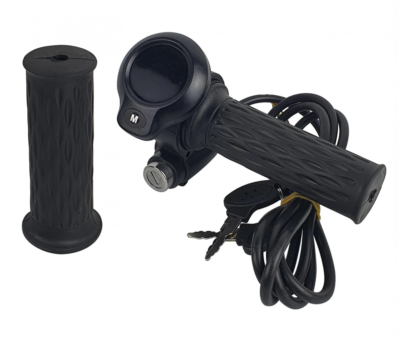 Maneta acceleratie + display (36v - 48v) *se livreaza la set (stanga-dreapta) Compatibila cu majoritatea bicicletelor electrice, trotinete pliabile, scutere electrice cu ghidon de 22 mm. Lungime fir: 180 cm Conexiuni: 1 mufa tata cu 3 fire 3 fire individuale (alb, galben, albastru)