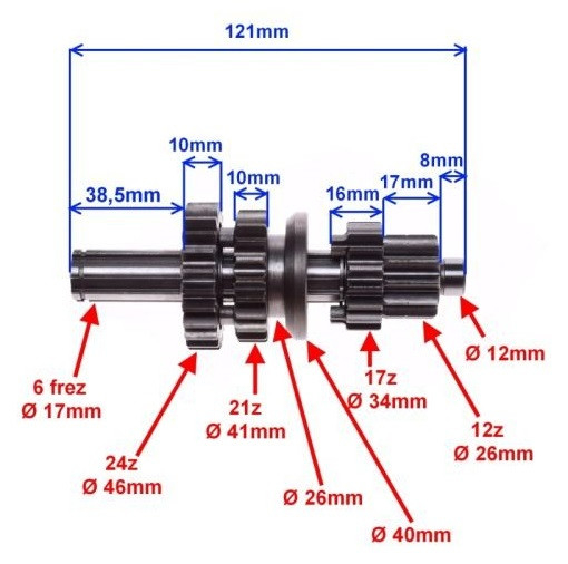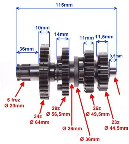 Grup pinioane cutie de viteze Cross 125cc *Pentru dimensiuni va rugam sa conultati una dintre imaginile produsului.