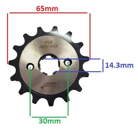 Pinion lant mic 420 15 dinti pentru ATV-uri de 50cc, 70cc, 110cc si moped in 4 timpi. Pentru dimensiuni va rugam sa consultati imaginea de mai jos: