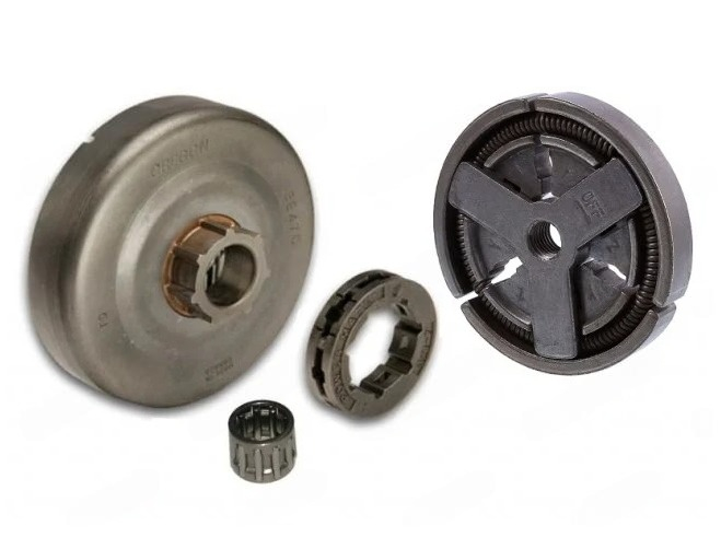 Ambreiaj pentru drujba chinezeasca 4500, 5200, Faworyt TS 520/TS 460/TS 45-18, Eco 460-18, Lider 46-18, Sterwins, Garland, NAC SPS01-45, Victus, Castorama PP45, Harder PN4500 etc. Oala o puteti achizitiona separat aici . Sabotii ii puteti achizitiona aici . Rotita motrica este aceasta . Dimensiuni: Diametru interior pinion 15mm Inaltime pinion 12mm Oala+pinion25mm Diametru oala interior 68mm Diametru oala exterior 71mm Setul contine: Oala, rotita motrica, colivie cu ace, saboti.
