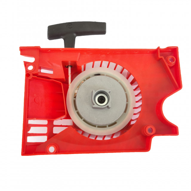 Demaror pornire dublu pentru drujba chinezeasca cu prindere in 4 suruburi. Materialul din care este fabricat carcasa demarorului este plastic, insa fulia este din metal (cu 4 clicheti). Demarorul vine complet echipat !