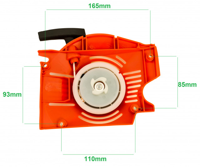 Demaror pornire de plastic pentru drujba chinezeasca 58cc cu prindere in 4 suruburi. Acest demaror este compatibil si cu drujbe Ruris 340, 490 Pentru dimensiuni va rugam sa consultati unai dintre imaginile produsului. *Mentionam faptul ca produsul nu este original, insa este compatibil pentru modelele enumerate mai sus .