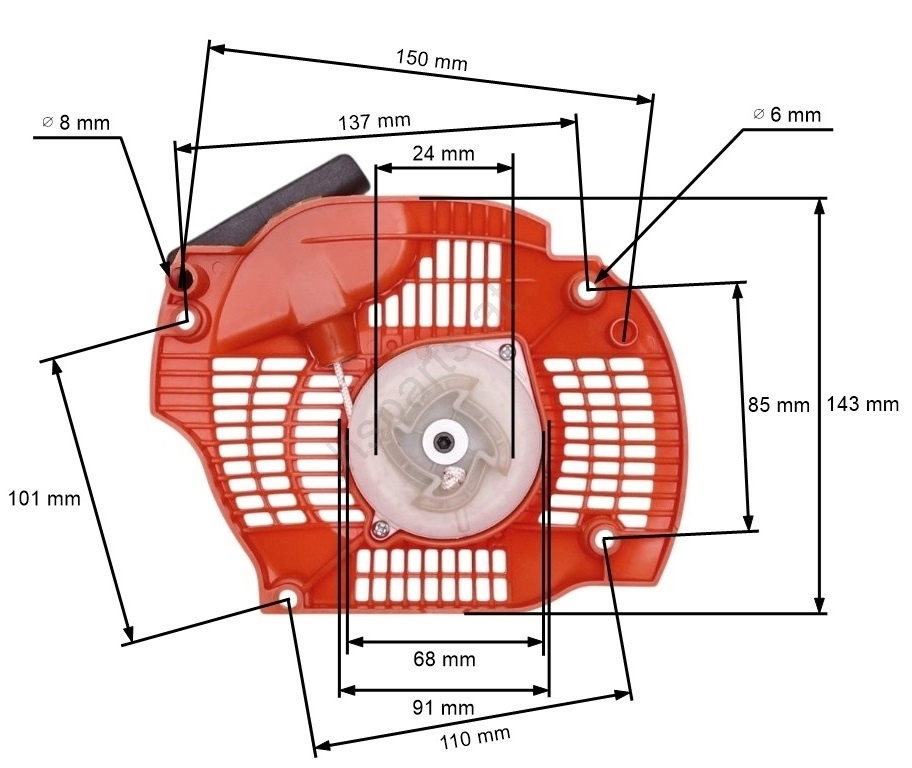 Demaror drujba compatibil pentru modelele Husqvarna 445, 450 Alte compatibilitati: Husqvarna 445 E, 2010-09 450 e II 450, 2011-07 450, 2010-09 445 e II 450 II 450 E, 2010-09 445 II 445, 2010-09 445, 2011-07 Coduri originale: 544071602, 544071604 Demarorul vine complet echipat, exact ca in poza. Producator: Taiwan.