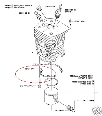 Garnitura cilindru drujba compatibil cu: Husqvarna 455 Rancher, 460 Rancher Produs original Husqvarna Tara de provenienta: Estonia Cod OEM: 537 24 57-01