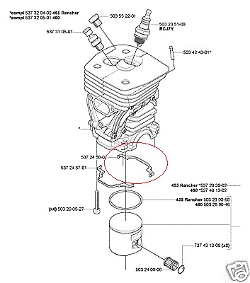 Garnitura cilindru drujba compatibil cu: Husqvarna 455 Rancher, 460 Rancher Produs original Husqvarna Tara de provenienta: Estonia Cod OEM: 537 24 58-01