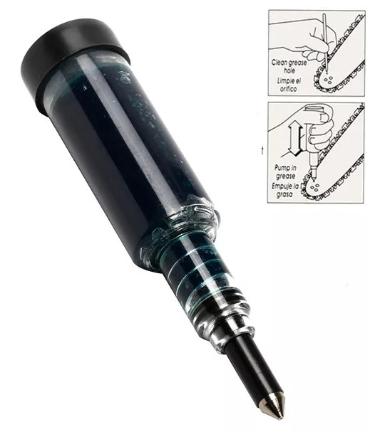 Ideal pentru gresarea zonelor greu accesibile ca: rulmentul sinei de ghidaj sau rulmentul cu ace de la ambreiaj. 42.5 gr Caracteristici : * Greseaza lama drujbei pentru o utilizare corespunzatoare a drujbei. * Reduce frecarea, inbunatateste performanța și extinde viața lamei si lantului drujbei. * Ajută la prevenirea uzurii premature a drujbei. Instrucțiuni de utilizare: 1. Înainte de a utiliza lubrifiantul, curățați gaura de gresare a lamei drujbei. 2. Așezați duza lubrifiantului peste orificiul lamei drujbei. 3.Apăsați în jos pe lubrifiant . Repetați până când grăsimea vine prin zona duzei, aproximativ 3 - 5 pompe.