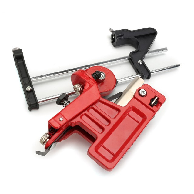 Dispozitiv pentru ascutit lant drujba (calitate superioara) Ascutitoare de precizie. - o modalitatea usoara pentru ascutirea lantului; - se utilizeaza fara demontarea lantului de pe sina de ghidaj; - ofera unghiuri precise de taiere; - se utilizeaza cu pile de toate marimile; - se utilizeaza de asemenea cu pile late pentru coborarea limitei de profunzine pentru o ascutire profunda; - ghideaza pila cu precizie; - evita erorile si salveaza timpul; Dispozitivul nu vine echipat cu pila ! Aici puteti gasi pile pentru acest despozitiv . Clip video despre cum functioneaza.