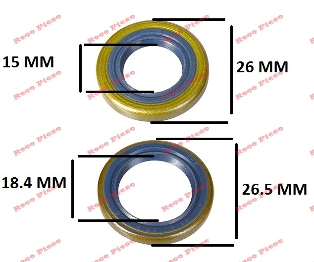 Simering ambielaj drujba pentru modelele HUSQVARNA: 362, 365, 371, 372. Dimensiune : 15mm 26 mm 3 mm 18.4mm 26.5 mm 3.8 mm ** pret pentru 2 bucati !