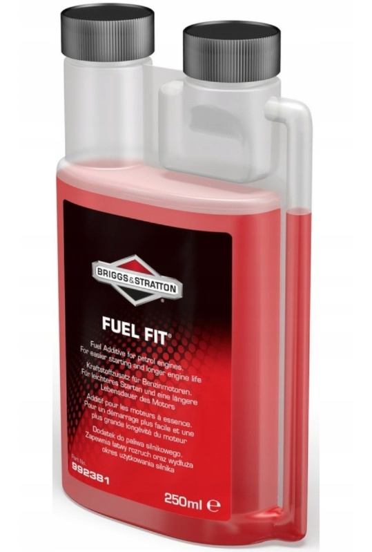 Aditiv carburant Briggs & Stratton Fuel Fit Folosiți produsele stabilizatoare de combustibil Briggs & Stratton Fuel Fit ™ pentru a vă menține combustibilul în formă de până la 3 ani, pentru a favoriza pornirea rapidă și a curăța sistemul de combustibil a utilajului. Noua și îmbunătățită Fuel Fit® de la Briggs & Stratton păstrează combustibilul proaspăt și protejează motoarele mai mult ca niciodată. Fuel Fit nu numai că menține carburatorul curat pentru o pornire ușoară, dar protejează și acum împotriva efectelor corozive ale etanolului . În prezent, în Romania, combustibilul fără plumb poate conține până la 15% etanol. Etanolul este hidroscopic (ceea ce înseamnă că atrage și se leagă ușor cu umiditatea atmosferică). Dacă etanolul și apa sunt amestecate, acesta devine coroziv pentru componentele cauciucului și metalelor. Cantitate 250ml. Produs original Briggs&Stratton