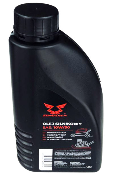 Ulei de inalta calitate pentru motoare in 4 timpi racite cu aer si cu pornire prin scanteie. Uleiul Zongshen 10W-30 SJ/CF a fost dezvoltat special pentru motoarele folosite in masinile de tuns iarba, motocultoare si alte motoutilaje. Pentru alimentarea corecta cititi instructiunile de utilizare a motoarelor. Predati uleiul uzat la centrele de colectare. Nu amestecati cu alte lichide. Cantitate 600ml.