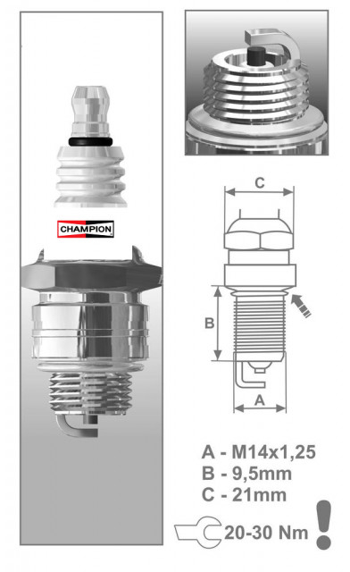 Bujie compatibila cu o gama variata de utilaje. Inlocuieste codurile originale: RJ19LM, WR11EO, 802592E, BS19LM, 992041, B18, BR2LM, RJ19LMBE, 2513202 Pentru dimensiuni va rugam sa consultati imaginile produsului. Marca Champion