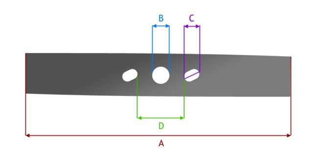 Cutit masina de tuns gazon compatibil cu: NAC Dimensiuni (conform poza): A - 398 mm B - 19,2 mm C - 12,4 x 18,3 mm D - 41,3 mm Coduri originale OEM WR-440