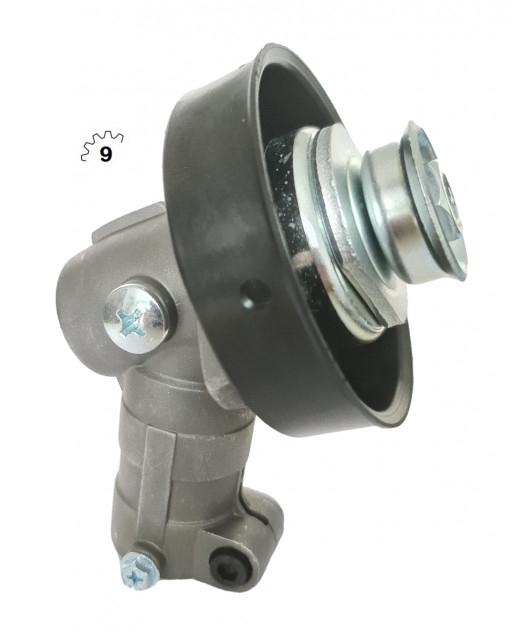 Angrenaj unghiular compatibil cu motocoasa Kawasaki TH43, TH48. Angrenaj unghiular motocoasa (diametru teava 28mm, ax transmisie 9 caneluri) Marime surub angrenaj 10 (pas 1.25)