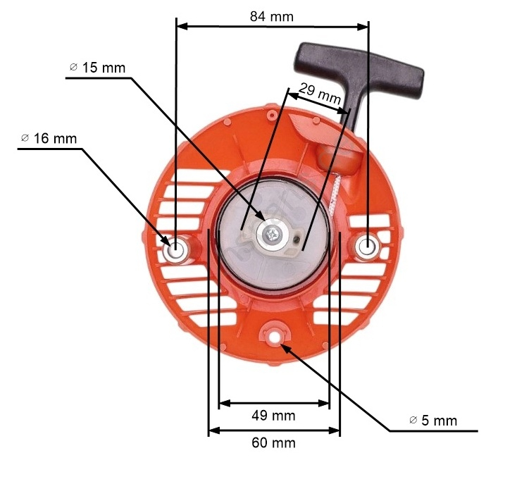 Demaror pentru motocoasa Husqvarna 124L,125L,125LD, 125E,128L,128LD, 128LDX, 128 R Date tehnice: Distanta dintre doua gauri : 80mm; Vine complet echipat cu :arc, fulie, maner, sfoara capac . Cod OEM: 579063101