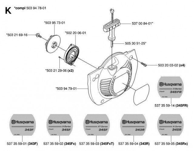 Demaror motocoasa Husqvarna 345FR, 343F, 345R