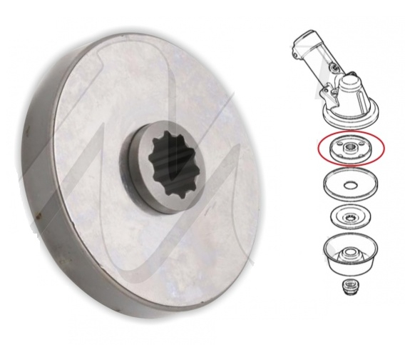 Saiba cap reductor motocoase STIHL. Dimensiuni: Diametru exterior: 80mm Dinti: 10 OEM: 41477103800