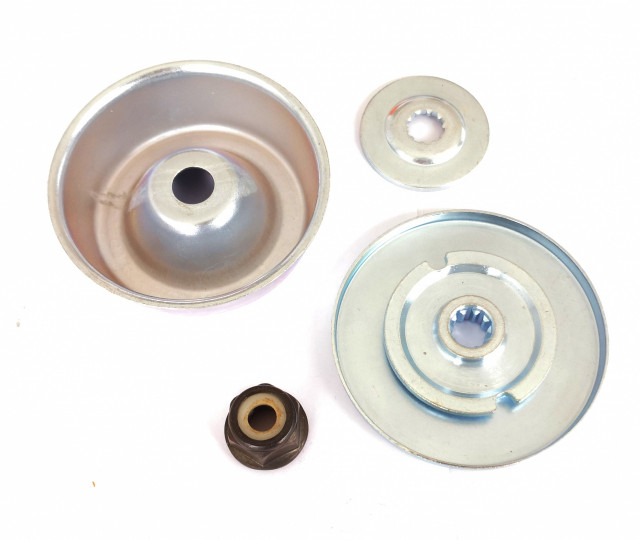 Kit reparatie angrenaj unghiular pentru motocoasa / motocositoare / trimmer. Compatibilitati: STIHL FS 55 . Kitul contine: fulie, oala, saiba si piulita . Dinti fulie: 10.