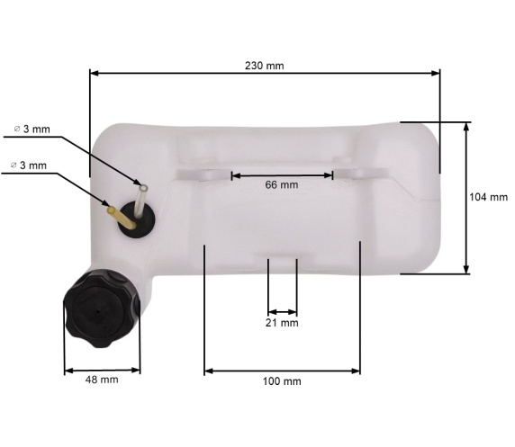 Rezervor de benzina pentru diverse modele de motocoase / motocositoare / trimere chinezesti, Ruris : Mitsubishi Fuxtec; Straus; Hecht; Stern; Swat; Ypal; Joka; Garden Field; Raider; Efco Stark; Ikra; Maruyama; Ouligen; Ural; BC; Altai; Anne; Viki; Pandora; Baical; Micu Fermier; Carpati, MITSUBISHI TL23 TL26 ;etc . Distanta dintre prinderi : 98mm *Mentionam faptul ca produsul nu este original, insa este compatibil pentru modelele enumerate mai sus .