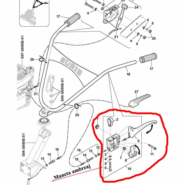Maneta ambreiaj motosapa Ruris Sprint 650B, 650L
