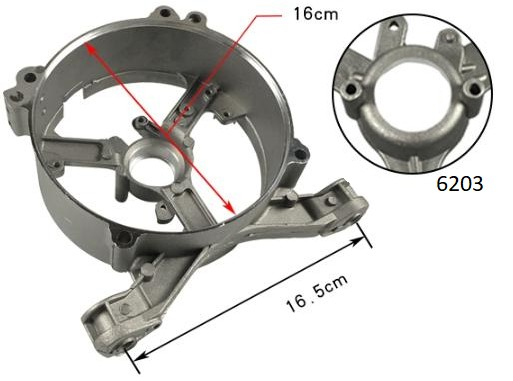 Carcasa carter generator 168 (model 2) compatibil cu generatoare chinezesti 5.5hp, 6.5hp si Honda GX140, GX160. Aceasta este o carcasa-suport pentru fixarea statorului si rotorului generatoarelor 168f *pentru rulment 6203 Mentionam faptul ca produsul nu este original, insa este compatibil pentru modelele enumerate mai sus .