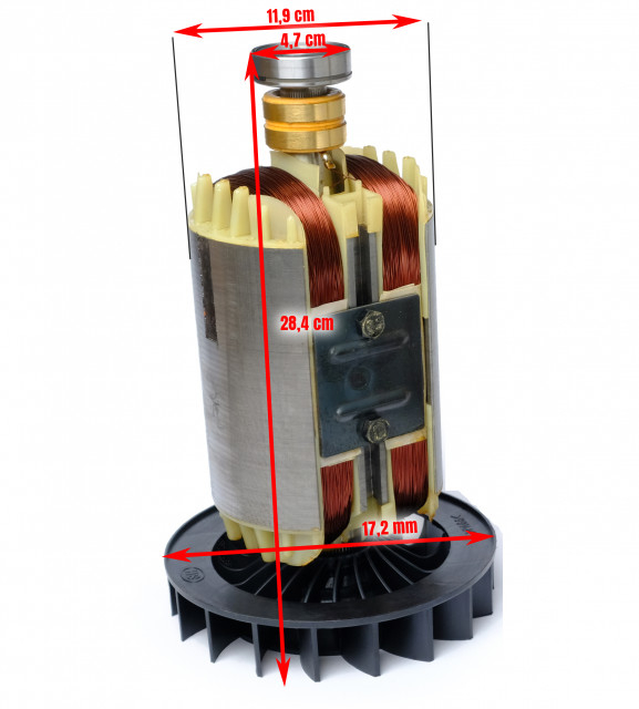 Rotor generator 5-6 KW (Gx 390, 188 ) Cupru compatibil si cu alte generatoare chinezesti 188 ( 13CP ) Bobinaj din cupru. Dimensiuni: Diametru con parte superioara: 25 mm Adancime con: 46mm Pentru alte dimensiuni consultati imaginea produsului: *Se livreaza fara periile colectoare ale generatorului. Produsele prezentate sunt compatibile dar nu sunt originale cu marcile si modelele din descriere.