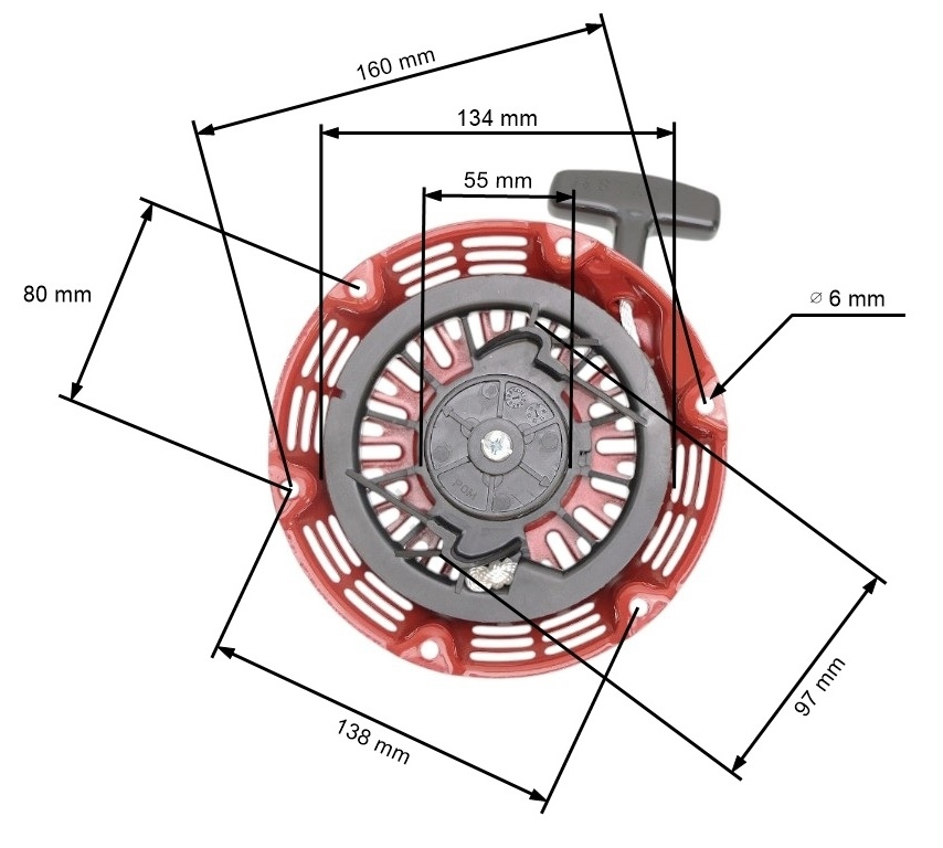 Demaror compatibil cu motoare pe benzina chinezesti de5.5cp, 6.5cp, 168F si pentru generatoare model Honda GX140, GX160. Distanta intre prinderi: 16cm Mentionam faptul ca produsul nu este original, insa este compatibil pentru modelele enumerate mai sus .