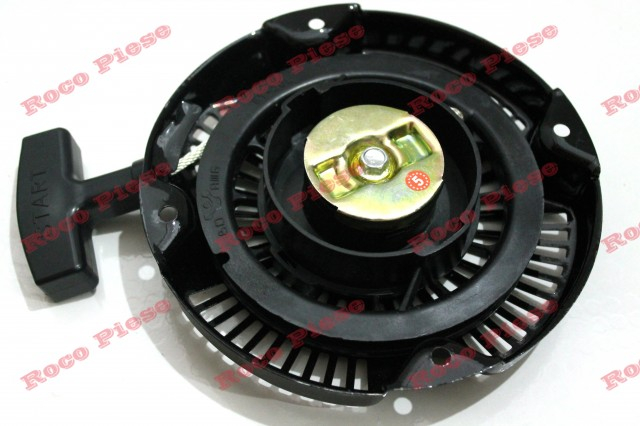 Demaror compatibil cu generatoare model Robin EY20. Distanta intre 2 prinderi opuse: 155mm Diametru fulie plastic: 130mm Diametru fulie plastic mica: 82mm; Diametru fulie metal: 52mm; Clicheti: metalici Mentionam faptul ca produsul nu este original, insa este compatibil pentru modelele enumerate mai sus .