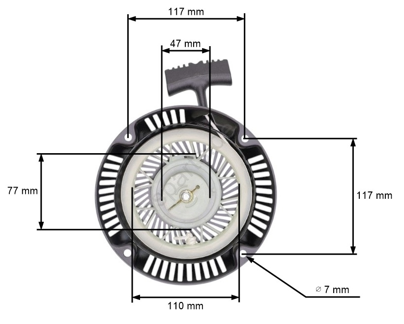 Demaror compatibil cu generatoare model Ruris LP, NAC DY164 Distanta intre 2 prinderi opuse: 117mm Clicheti: metalici Mentionam faptul ca produsul nu este original, insa este compatibil pentru modelele enumerate mai sus .