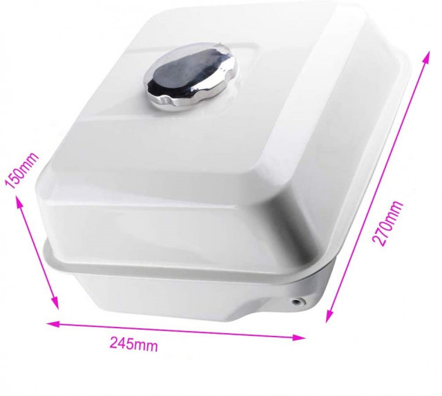Rezervor motosapa / motopompa / motoutilaj Honda GX 240, GX 270, GX340, GX390 (motoare cu motorizari cuprinse intre 9 - 15 CP) . Mentionam faptul ca produsul nu este original, insa este compatibil pentru modelele enumerate mai sus . Dimensiuni rezervor : Lungime: 260 mm Latime: 230 mm Inaltime : 130 mm Capacitate rezervor 6.5 L Se livreaza cu buson Busonul pentru acest rezervor il gasiti aici . cod original: 175102e30202a