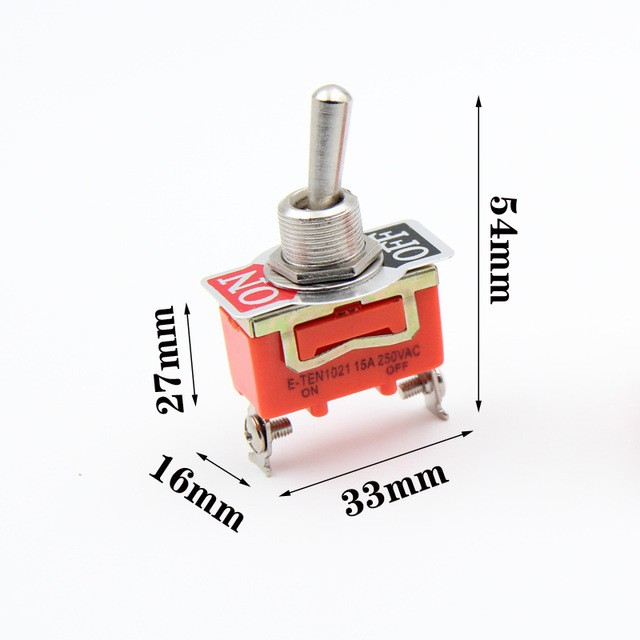 Comutator cu 2 pozitii ON OFF si 2 papuci Dimensiuni carcasa 29x13x25 mm, lungime maneta 17 mm. . Putere 15A 250V, 2papuci . Poate fi folosit pentru motoarele electrice ( schimbare de sens a unui motor cu curent continuu). Poza informativa.