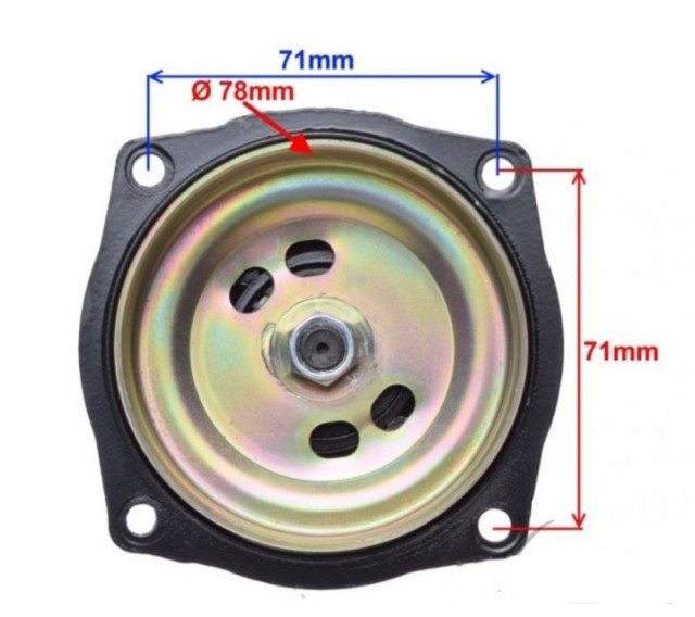 Oala ambreiaj pentru Pocket Bike cu 7 dinti (mici). Diametru oala (interior) 77.5mm Distanta intre prinderi (pe latura): 70mm Distanta intre prinderi (pe diagonala): 100mm Sabotii pentru aceasta oala: