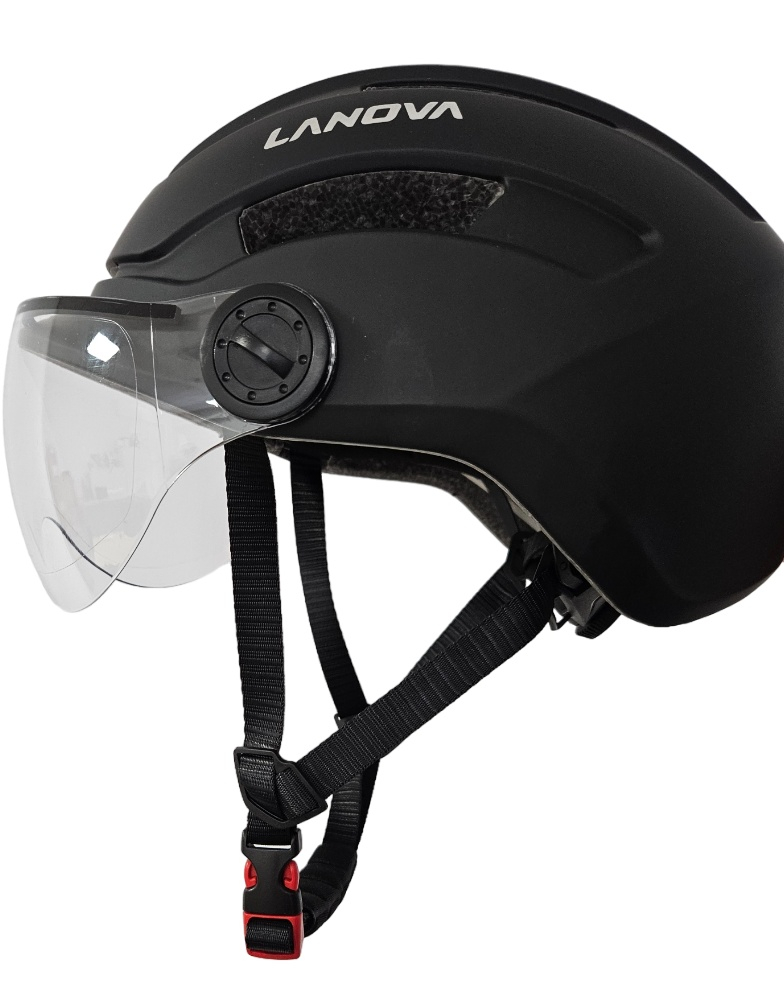 Casca trotineta cu leduri incorporate si viziera. *baterie reincarcabila litiu. Culoare: Negru mat. Marime M (55-58cm)