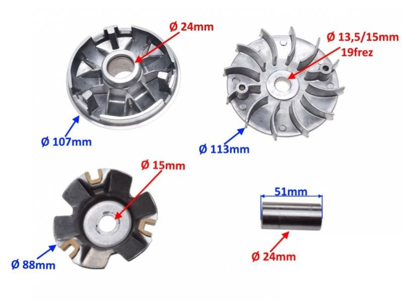 Variator complet pentru scutere chinezesti in 4 timpi cum ar fi: Baja 150cc Baotian 125cc Fly Scooters 150cc Gorila Motor Works 150cc Jmstar 150cc Jonway 150cc Kreidler 125cc Lance 150cc Longbo 150cc Longjia 125cc Massimo 150cc Moto Zeta 125cc Motofino 150cc Motorro 125cc MUZ 125cc Puma 150cc Qingqi 125cc Roketa 150cc SunL 150cc TNG 150cc Tank 150cc Vento 150cc Xingyue 150cc Znen 150cc