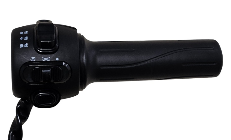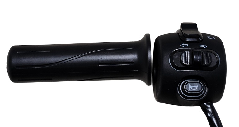 Acceleratie + comenzi lumini scuter electric Maneta de acceleratie se livreaza cu butonul de selectare a treptei de viteze (3 trepte), cu butonul de lumini si cu butonul de pornire cu urmatoarele fire: o mufa cu 5 fire si 2 mufe a cate 3 fire. Maneta cu blocul de lumini are butonul de lumini, butonul de semnalizare si claxonul cu urmatoarele fire: o mufa cu 8 fire. *Se poate monta pe ghidoane cu diametru de 22mm