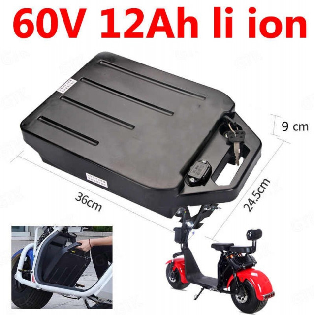 Baterie reincarcabila trotineta electrica 60 V, 12 A. Specificatii tehnice: Timp de incarcare: 5 ore Capacitate: 12AH Tip : Lithium - ion Voltaj nominal: 60V Amperajul de incarcare: 4 (A) Voltajul de incarcare: 67.2V Voltajul de descarcare: 48V Temperatura de depozitare: 0-25 degrees Temperatura de utilizare : -5-50 degrees *Pentru dimensiuni va rugam sa consultati imaginile produsului Incarcatorul pentru aceasta baterie il puteti gasi accesand linkul de mai jos: https://www.generalmotor.ro/piese-kit-conversie-bicicleta-electrica/incarcator-baterie-scuter-electric-tip-harley-city-coco-67-2-v-model-2
