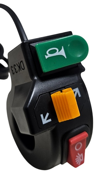 Bloc lumini scuter electric City Coco (60V). Se poate monta pe ghidoane cu diametru de 22mm Blocul de lumini are incorporat butoanele de lumina, semnalizare si claxon