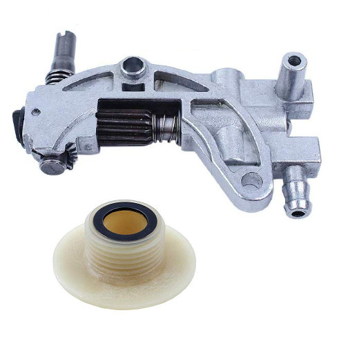 Pompa ulei + melc antrenare compatibil pentru drujbe chinezesti model 4500 / 5200 cum ar fi : Ruris 340, 490, Jenn Feng 4000, 4500, 5200; ALKO, Einhell, Grizzly, Uraganul, Regele Mestesug, Talon etc. *Mentionam faptul ca produsul nu este original, insa este compatibil pentru modelele enumerate mai sus .