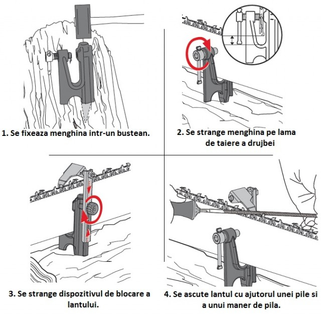 Menghina pentru ascutit lant drujba (Tecomec) Menghina cu ajutorul careia se imobilizeaza lama, astfel incat sa ramana intr-o pozitie fixa atinci cand se ascute lantul. Se poate regla in functie de modelul lamei. Menghina este prevazuta cu un dispozitiv automat de blocare a lantului. *Se foloseste impreuna cu pila de ascutit lant sau cu dispozitiv de ascutit lant drujba . ( Nu se livreaza cu acestea !) Cod original: 10909008 Pentru alte detalii despre cum functioneaza va rugam sa consultati imaginea \ video-ul de mai jos: